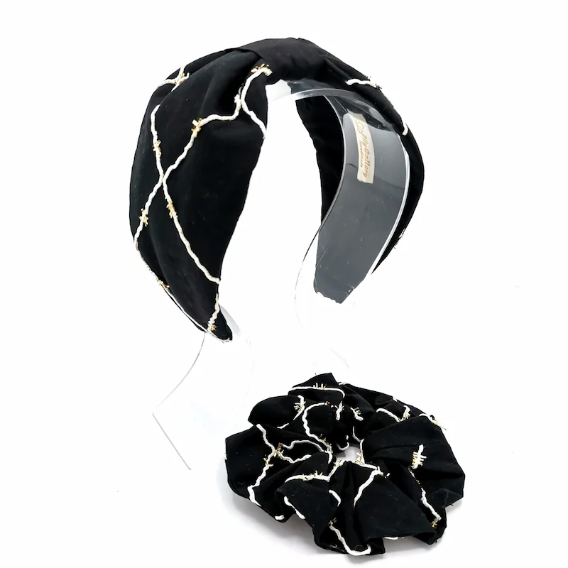 تل مجلسی سوزن دوزی هندی مشکی(با اسکرانچی سِت)
